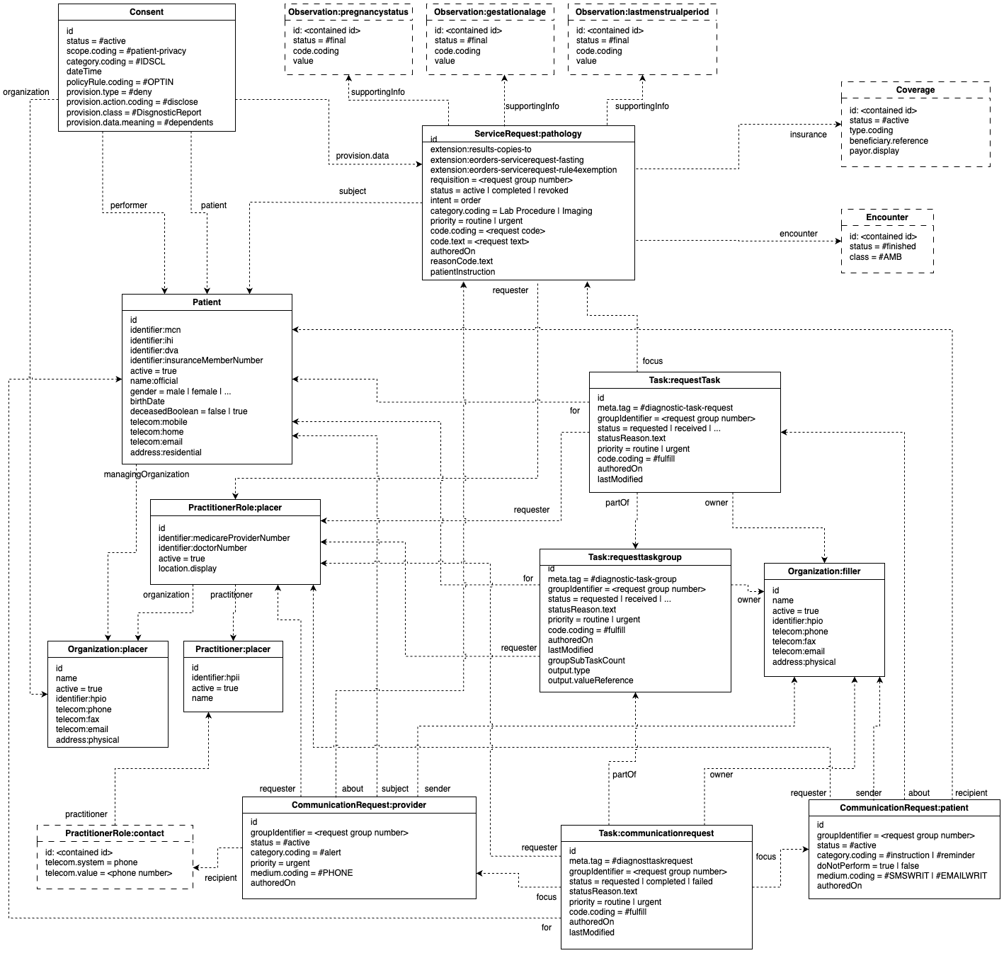 The FHIR Resources generated by the Magentus Requesting Service are listed below. It should be noted that Diagnostic Service Request should be regarded as a legacy profile and instead replaced by explicit Pathology Request and Radiology Request.
